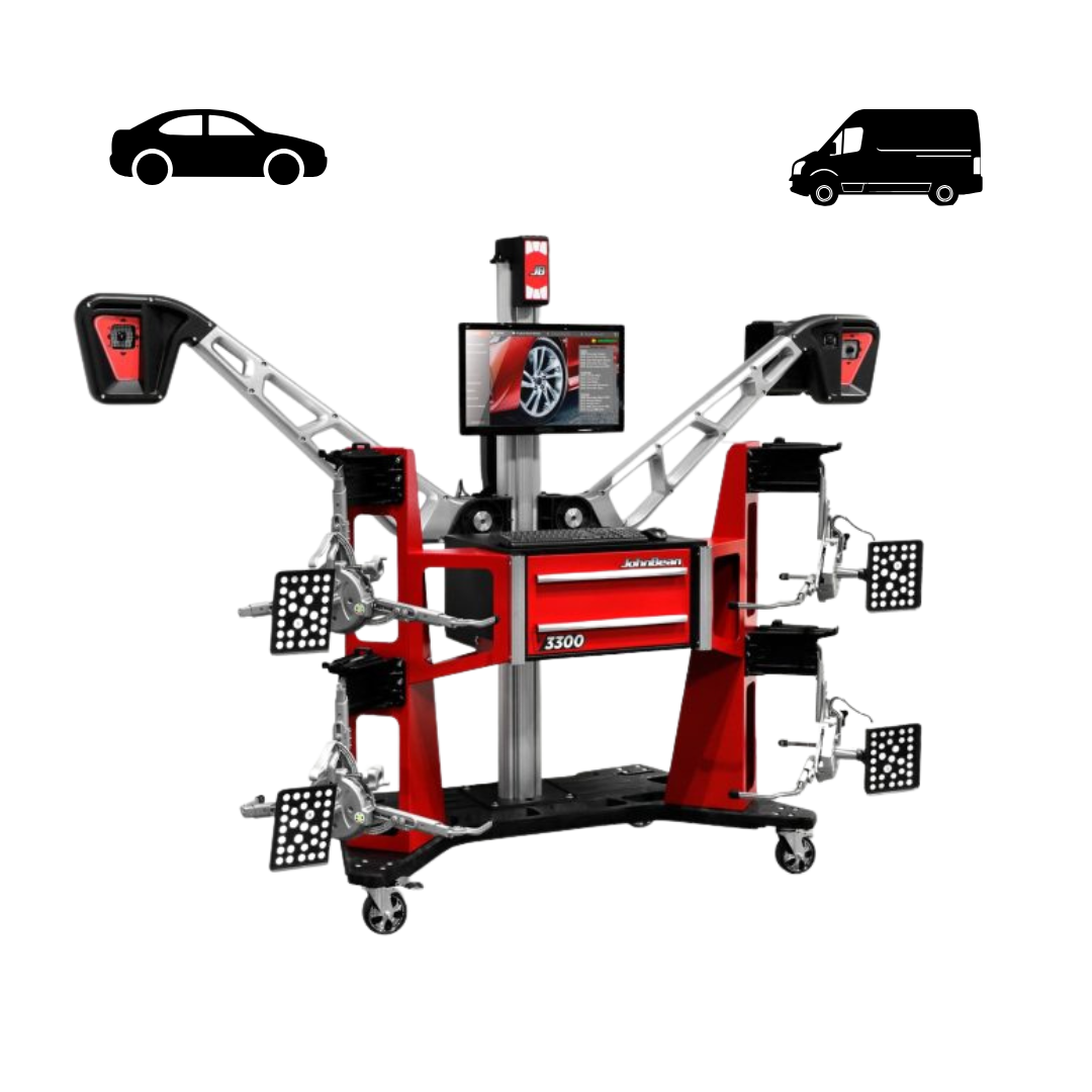 פתרון מהפכני ומתקדם מבית יצרן העל JOHN BEAN, המאפשר ניוד המכשיר במוסכי שירות גדולים, מדידת רכבים במיקומים שונים ומגוונים תוך שמירה והקפדה על מדידות מדויקות, כולל מדידות מרחקי סרנים ללא צורך בכיולים בשינוי המיקומים וחיבור אונליין לעדכוני מפרטים ושירותי ענן מתקדמים. בעל טכנולוגיה מתקדמת הכוללת מתאמים קלים באחיזה על הצמיג, ללא מגע בחישוקי מגנזיום. מתאים למוסכים המבקשים להעניק ללקוחותיהם חווית שירות ברמה הגבוהה ביותר.