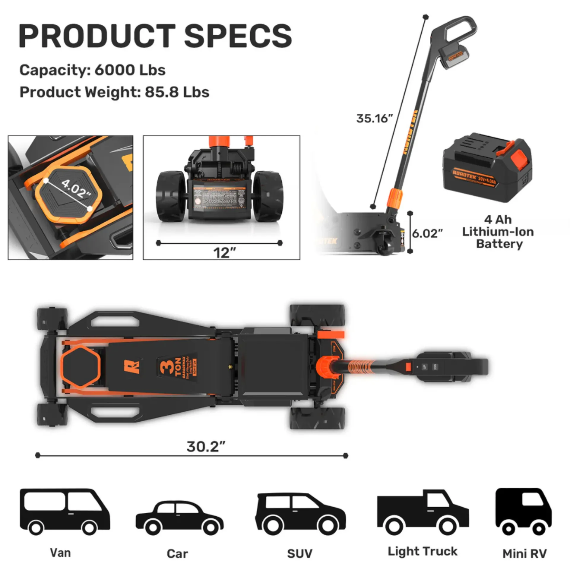מגבה 3 טון חשמלי מופעל על ידי סוללה