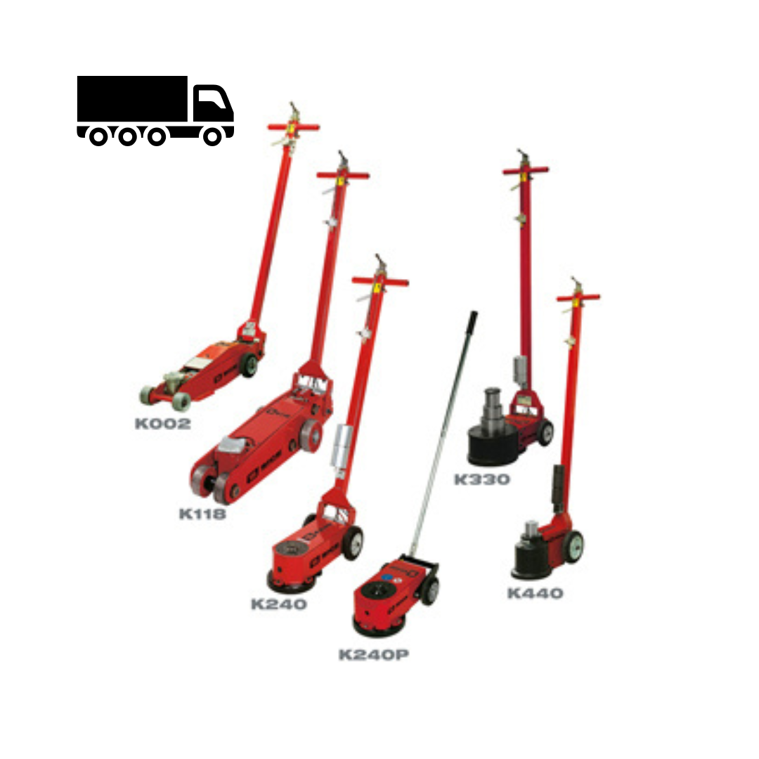 ג’ק אוויר-הידראולי תעשייתי ל-40 טון, גובה התחלתי 230 מ"מ מבטיח הרמה בטוחה ומהירה לכלים כבדים ולמשאיות תובלה כולל תוספת הגבהות.