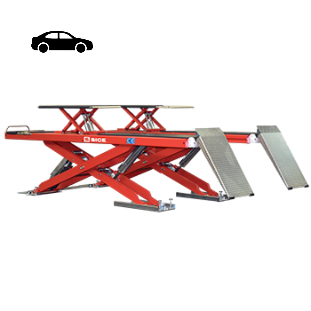 ליפט מספריים לכיווני פרונטים המיועד לרכבים פרטיים ומסחריים עד 5.5 טון, כולל פלטות אחוריות פנאומטיות.